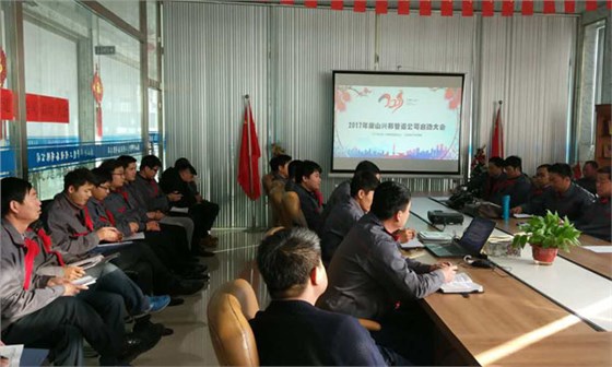 大会号召公司全体干部职工进一步坚定理想信念,统一思想认识 ,敢于担当,勇于创新,以改革的勇气和精神,探索发展模式,实现转型升级;以创新的理念和能力,巩固胜利成果,铸就辉煌业绩;以严实的品质和作风,真抓实干担起责任,顶住压力。在“新常态”下,懂得规避风险,抢抓机遇,上下齐心,加快推进公司创新发展、转型升级、提质增效再上新台阶,迈向新里程,为兴邦管道的持续发展贡献力量。